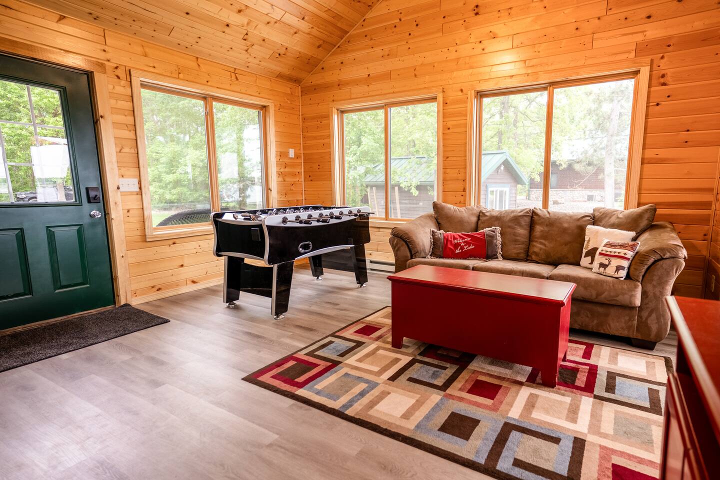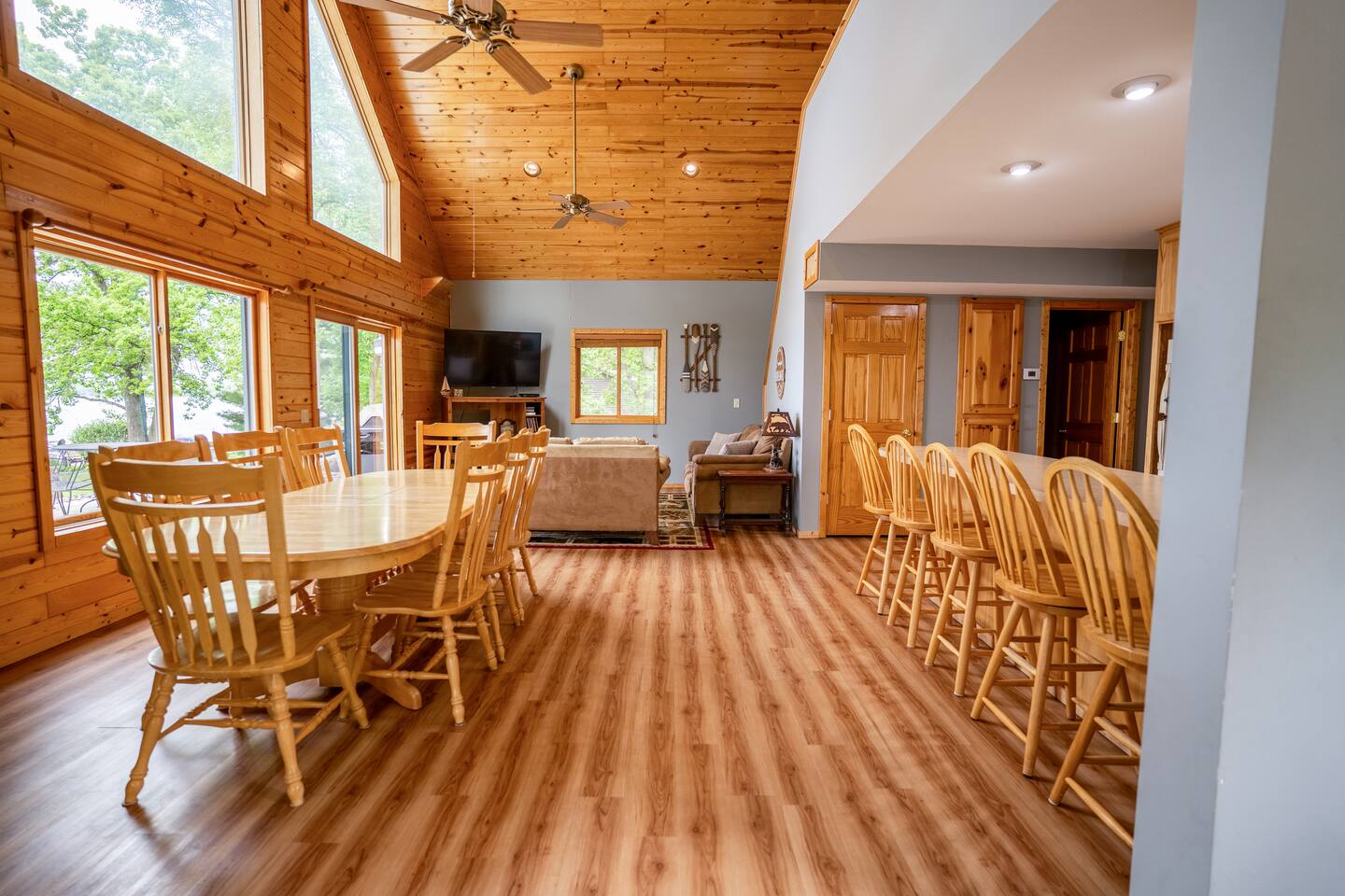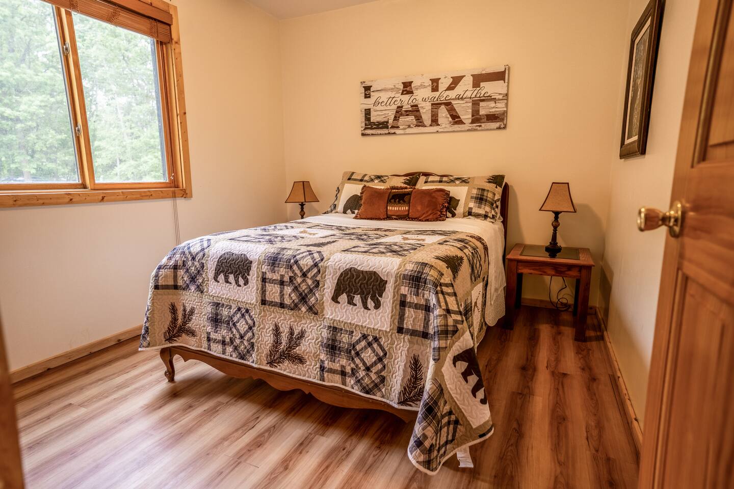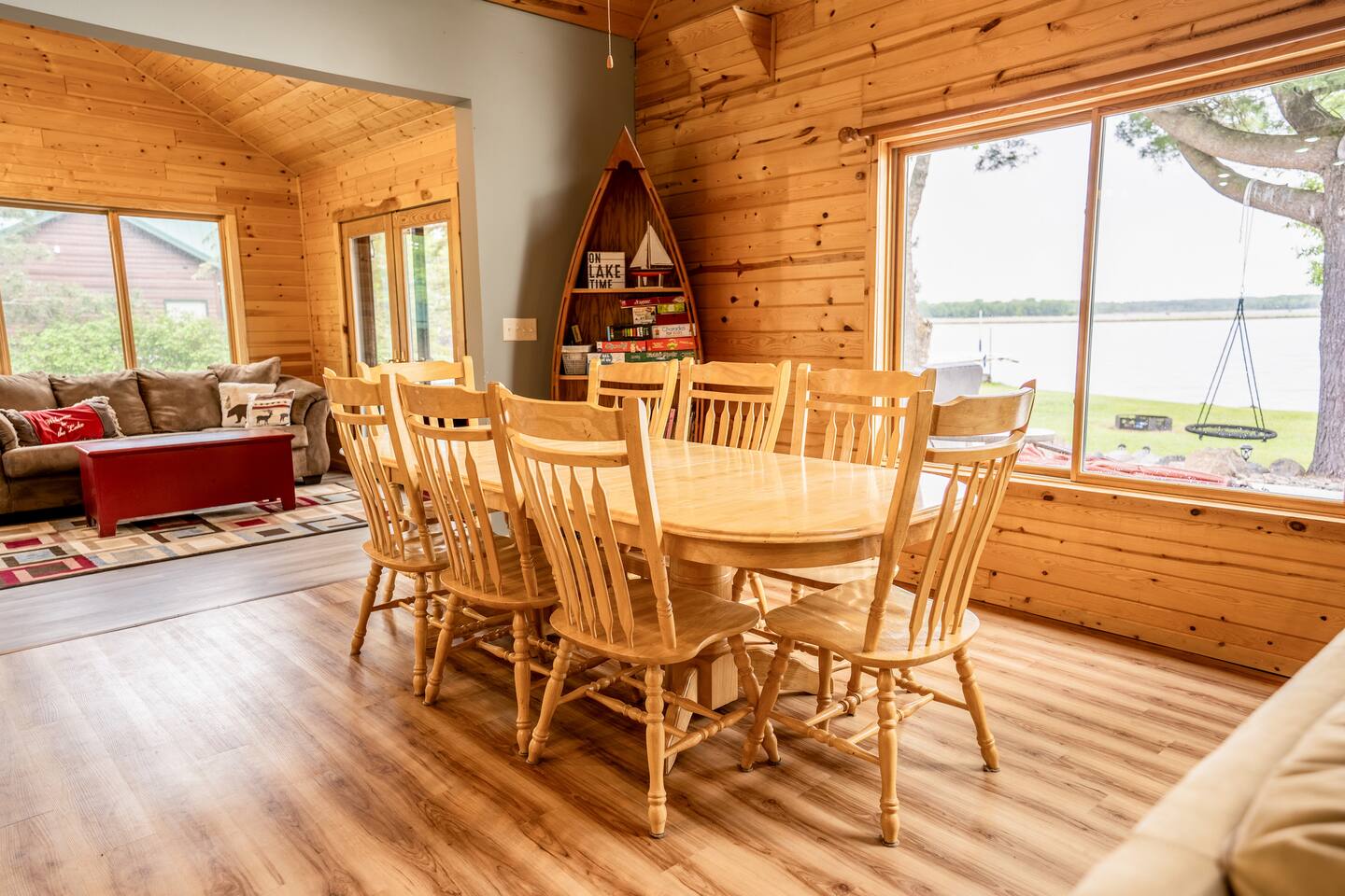 Whether you're seeking adventure or tranquility, this lakefront home offers the perfect backdrop for making lifelong memories. Experience the Best of Lake Life in Siren – Details Below! ★☆ PROXIMITY ☆★ .☛ Upper Clam Lake: A 1,388-acre lake perfect for fishing, boating, and swimming. .☛ Local Dining: Enjoy two bar/restaurants located directly on the lake. .☛ Downtown Siren: Just minutes away, offering restaurants, shops, a grocery store, and a movie theater. .☛ Outdoor Activities: Explore opportunities for 4-wheeling, snowmobiling, and more in this year-round vacation destination .☛Mini-golf available in town for some family-friendly fun .☛Beautiful 18-hole golf course nearby in Siren, called Siren National, perfect for golf enthusiasts ★☆ BEDROOM ARRANGEMENT☆★ 🛏️ Bedroom 1: 1 Queen Bed 🛏️ Bedroom 2: 3 Queen Beds and 1 Full Bed 🛏️ Bedroom 3: 1 Bunk Bed (Twin over Queen) 🛏️ Sun Room: Pull-out couch ★☆ LIVING ROOM ☆★ Step into your inviting living room, where warmth and comfort await. Sink into plush seating as you enjoy your favorite shows on the smart TV, or gather around the coffee table for a spirited game night with the provided board games and playing cards. Stay connected with fast Wi-Fi, ensuring you're always in touch or entertained. ★☆ GAME ROOM ☆★ Fuel up and have fun in your private game room retreat. Challenge your crew to a foosball match, dive into a variety of board games and playing cards, or kick back with a fresh brew from the coffee bar. Whether it’s a rainy day or a late-night hangout, this cozy, entertainment-packed space is perfect for making memories indoors. ★☆ KITCHEN & DINING ☆★ The fully equipped kitchen includes modern appliances and all the essentials for preparing meals. Adjacent to the kitchen, the dining area offers ample seating for family dinners or entertaining guests. ★☆ OUTDOOR SPACE ☆★ Soak up the outdoors with everything you need for fun and relaxation. Fire up the grill for a lakeside cookout, then unwind around the cozy fire pit under the stars. Lounge in the hammock, dine al fresco with outdoor seating, or kick back on stylish patio furniture. Kids will love the saucer swing while you take the kayaks out from your private boat dock. With driveway parking for 5+ vehicles, there's room for everyone to join the adventure.